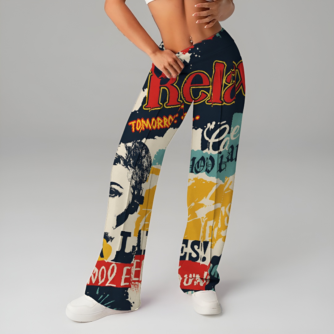 Women's Color printing Loose leisure sports Straight Leg Pants