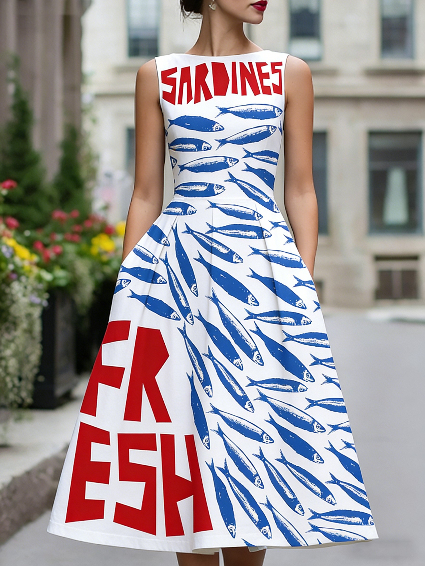Women's Elegant Summer Cotton Linen Printed Midi Dres