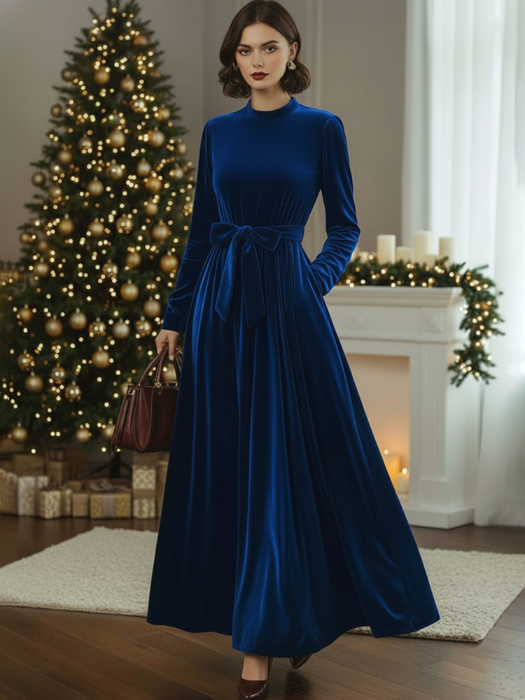 Refined, graceful, and effortlessly luxurious — the Mock Neck Long Sleeve Velvet Maxi Dress captures the essence of timeless holiday elegance.
