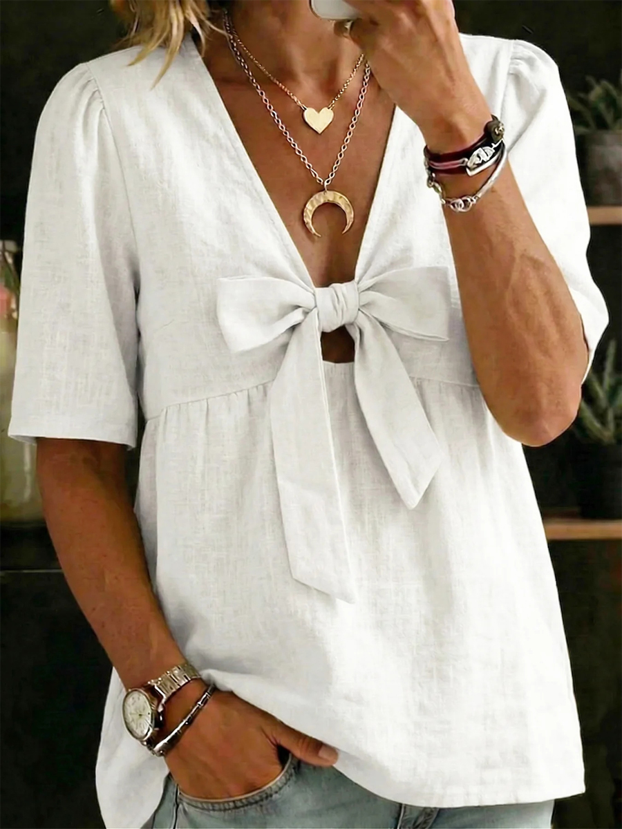 Women's 3/4-sleeve V-neck Cotton Linen Shirt