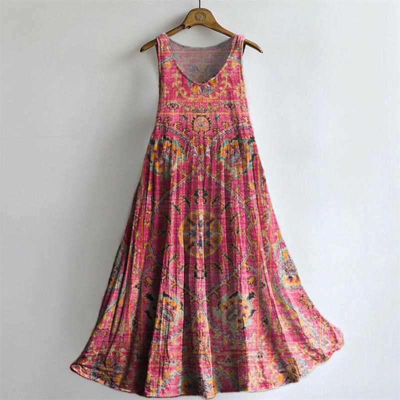 Women's Colorful Retro Totem Art Print Sleeveless Cotton Pocket Dress