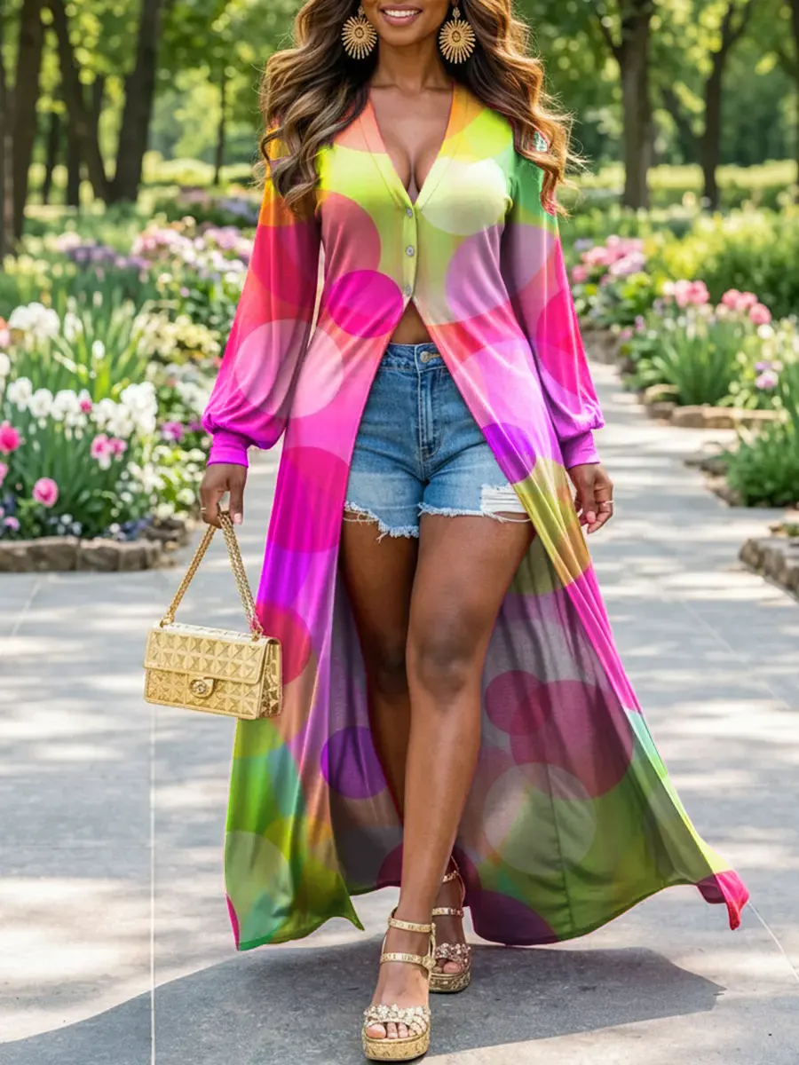 Women's Fashion Abstract Art Print Long-sleeved Cardigan