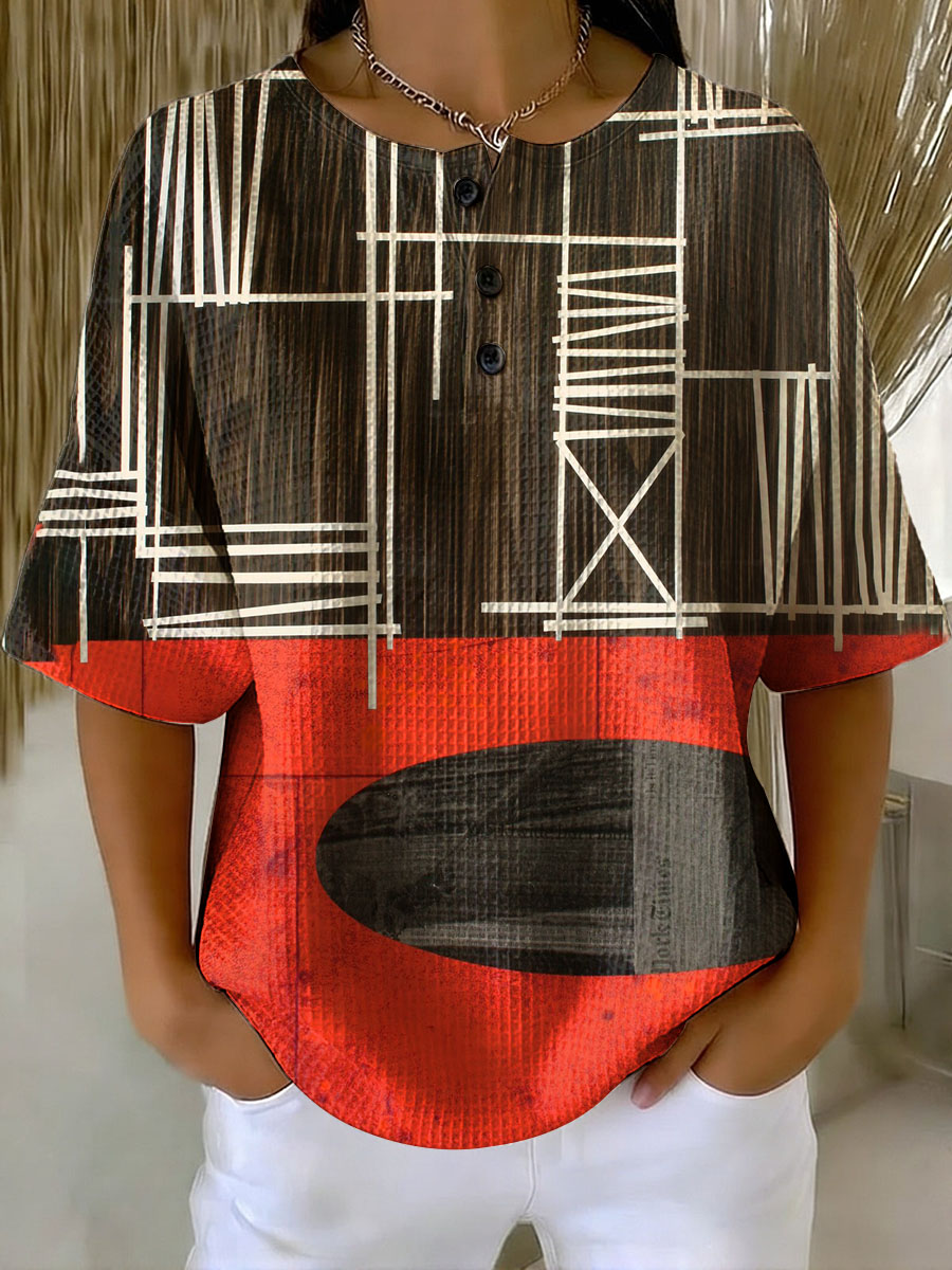 Women's Geometry Art Print Casual Waffle Cotton Shirt