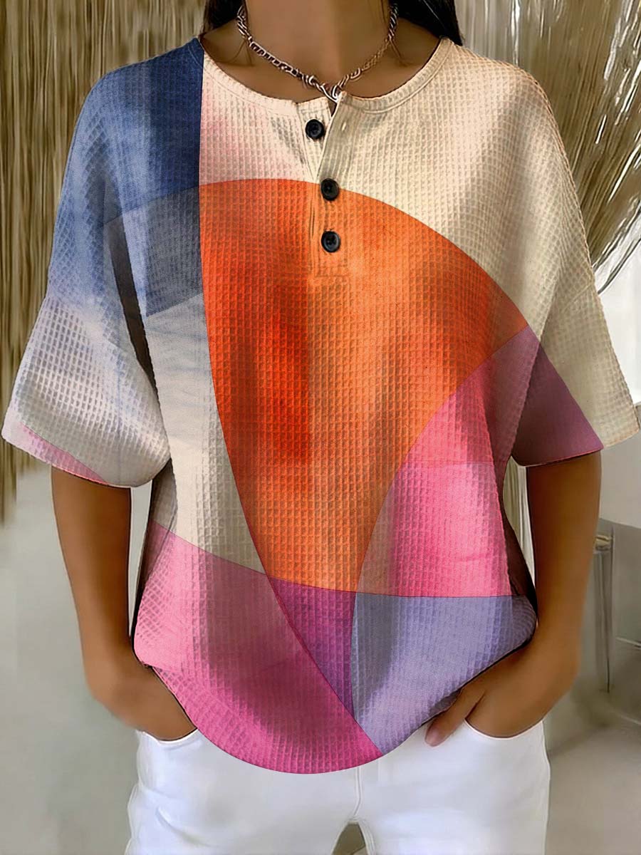 Women's Geometry Art Print Casual Waffle Cotton Shirt
