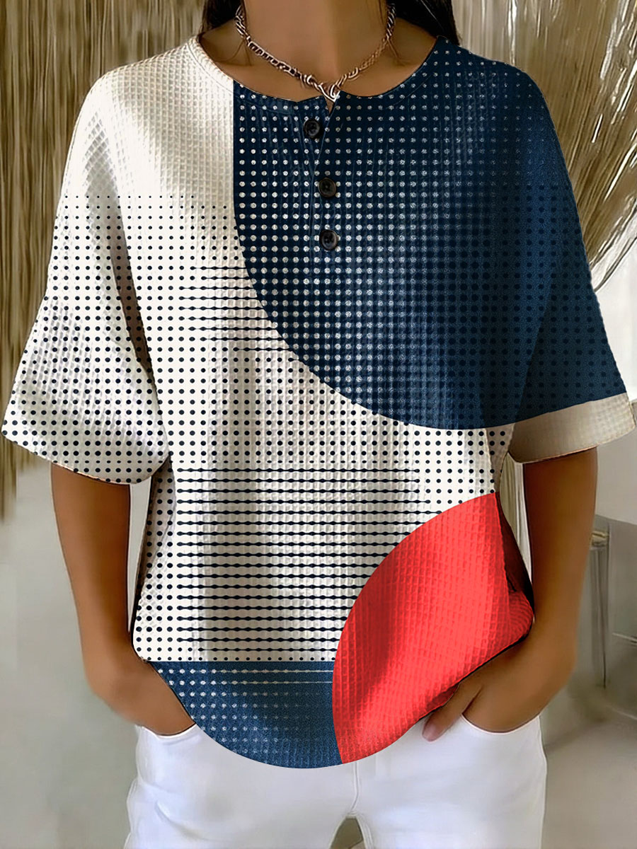 Women's Geometry Art Print Casual Waffle Cotton Shirt